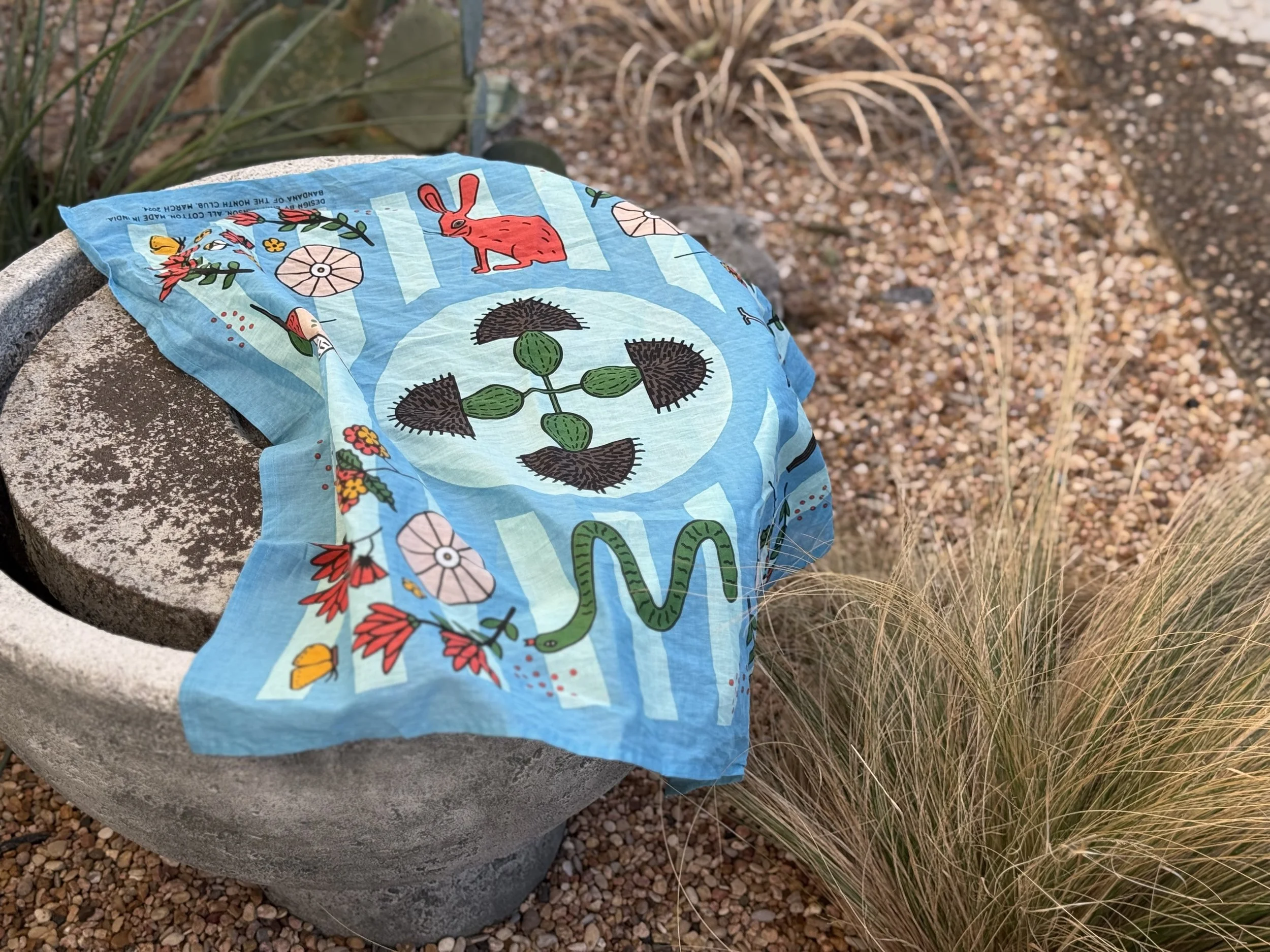 Bandana designed for Bandana of the Month Club. Inspired by some of my favorite things in one of my favorite places — West Texas… aka Best Texas.